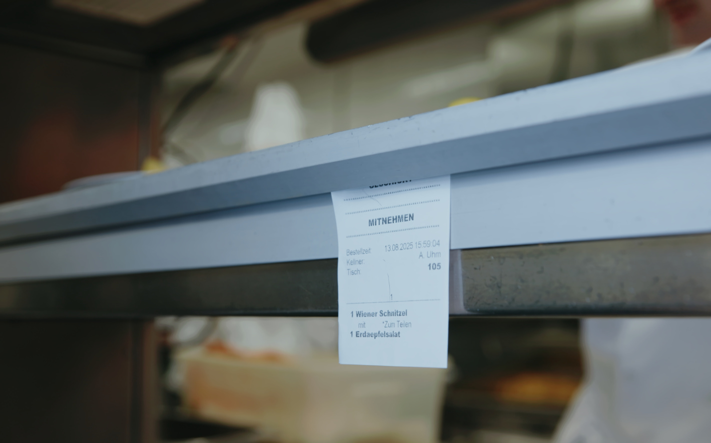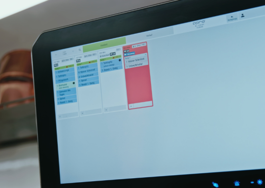 Die APRO-Küchenmonitore sorgen für geordnete, übersichtliche Prozesse hinter den Kulissen – kein Zettelchaos, kein Kommunikationsverlust. Bestellungen gelangen in Echtzeit aus dem Service direkt in die Küche oder an die Schank. -